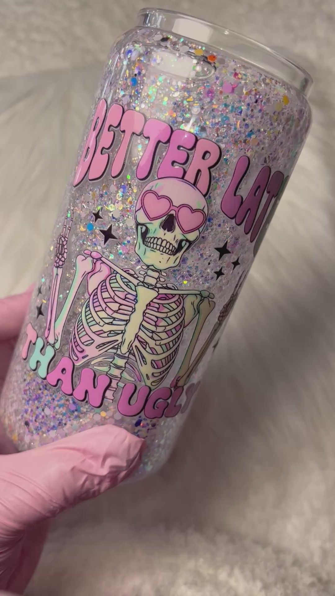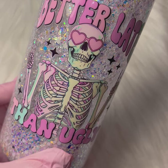 20oz Glass Snow Globe Tumbler -- Better Late than Ugly (pre-made)