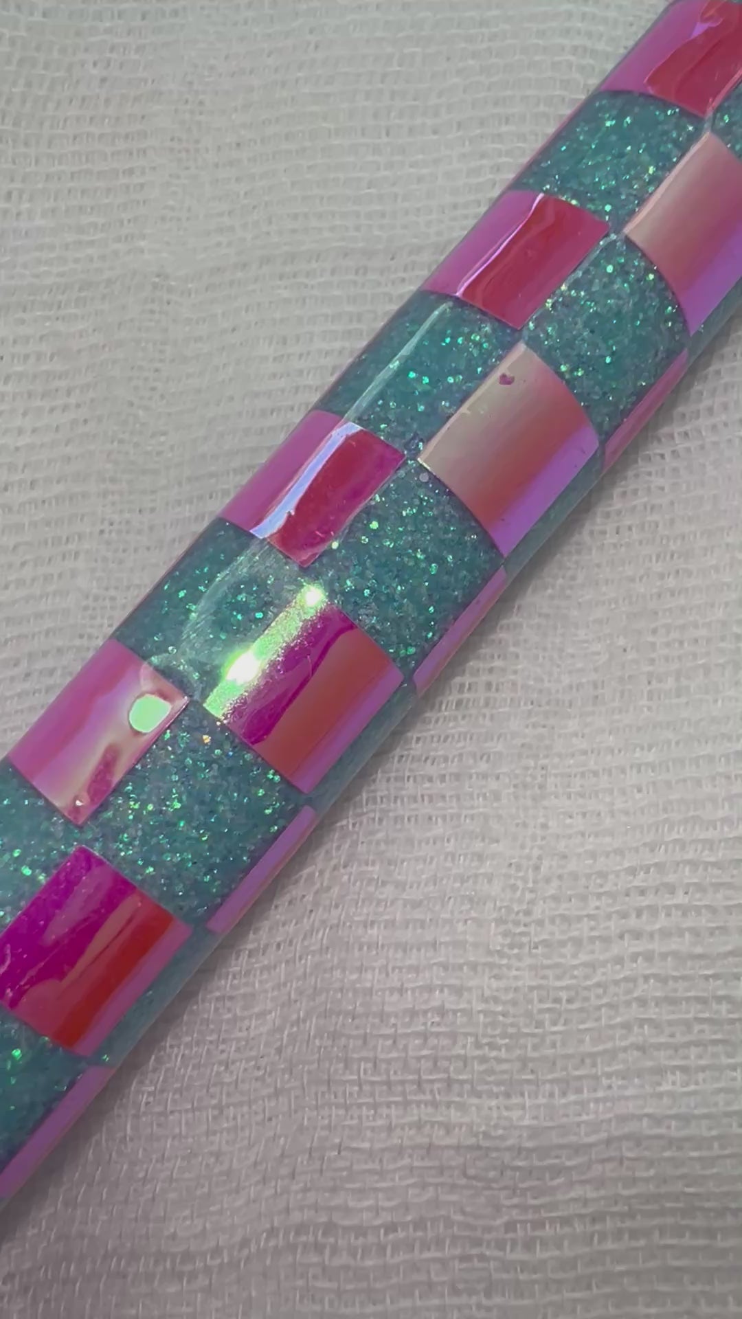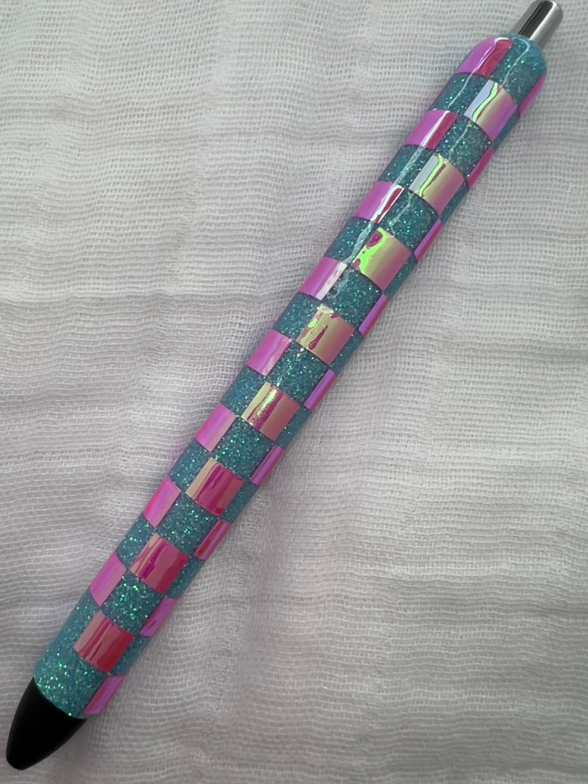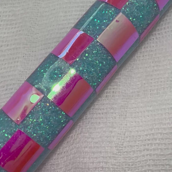 Light, airy, and magical — pastel blue checks with a shimmering pink haze. A soft statement that still stands out.