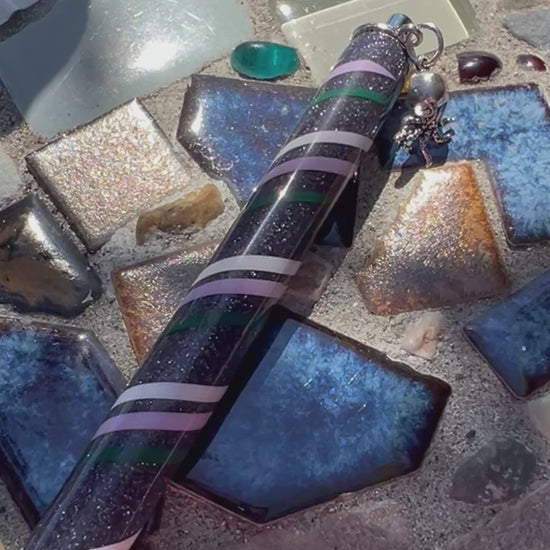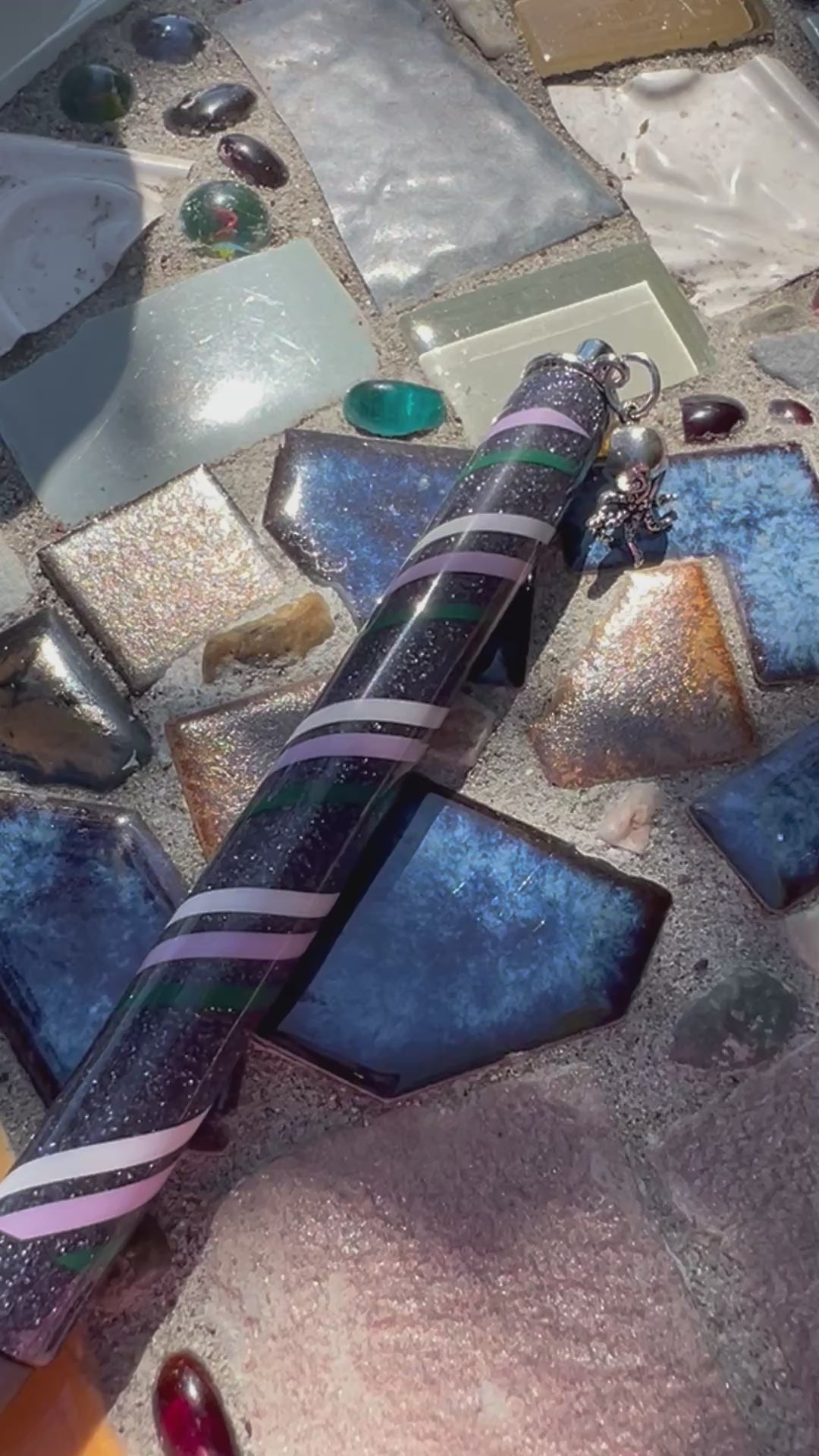 Navy base with lilac spiral stripes + an OCTOPUS (my signature) charm! Old Hollywood elegance with Vegas sparkle.