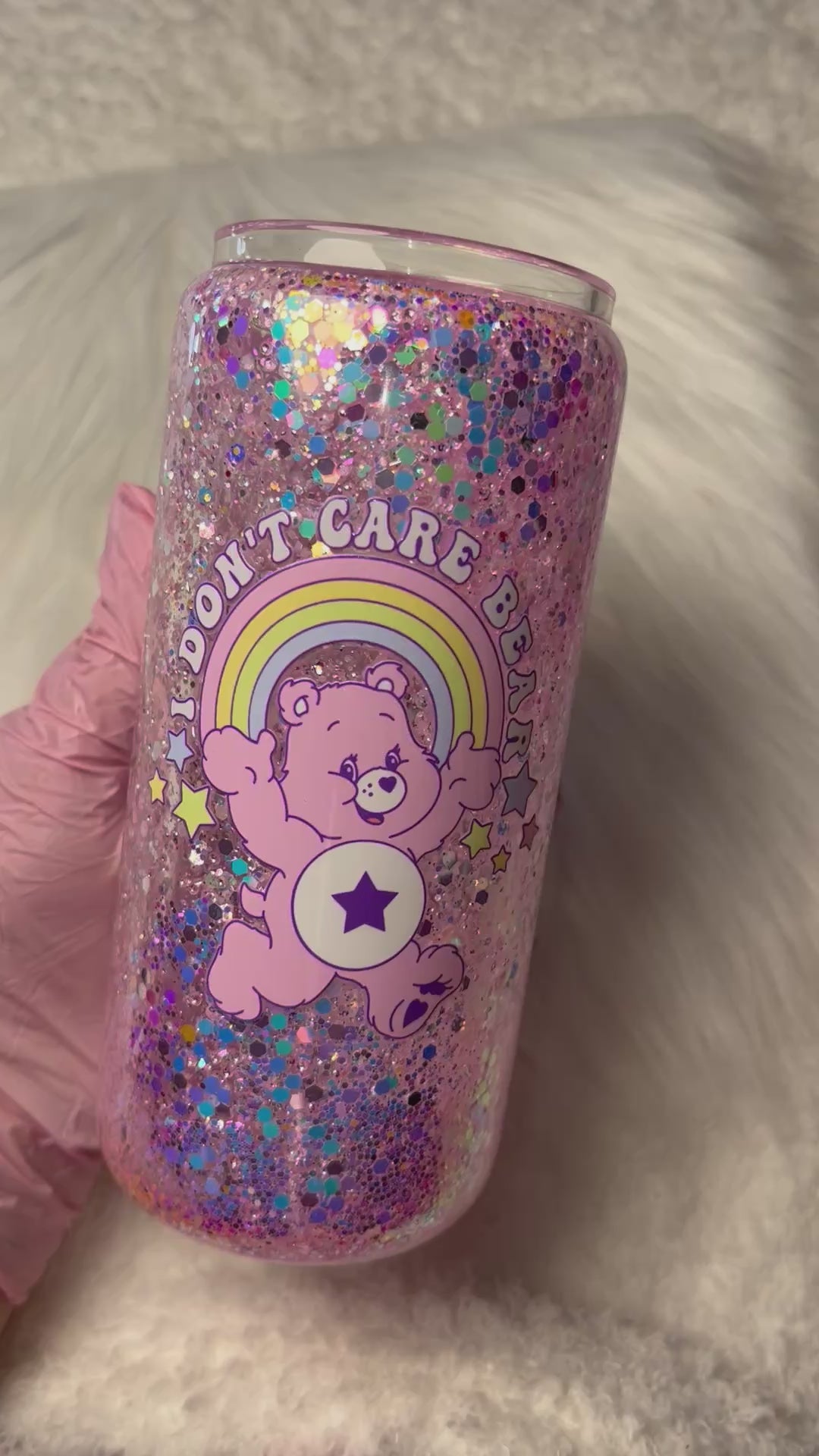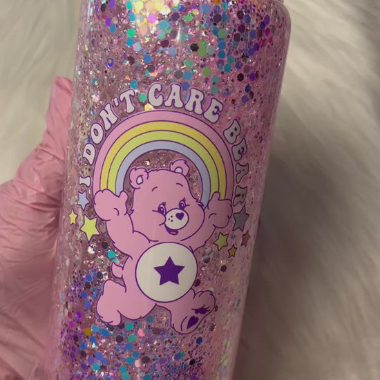 20oz Glass Snow Globe Tumbler -- Don’t Care Bear (pre-made)
