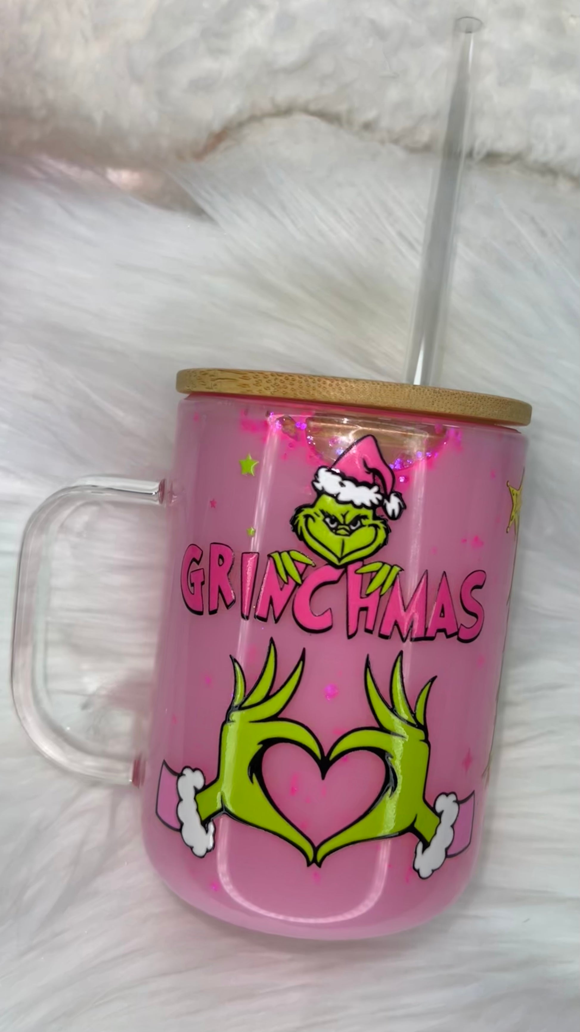 This pre-drilled glass snow globe mug can be customized with: