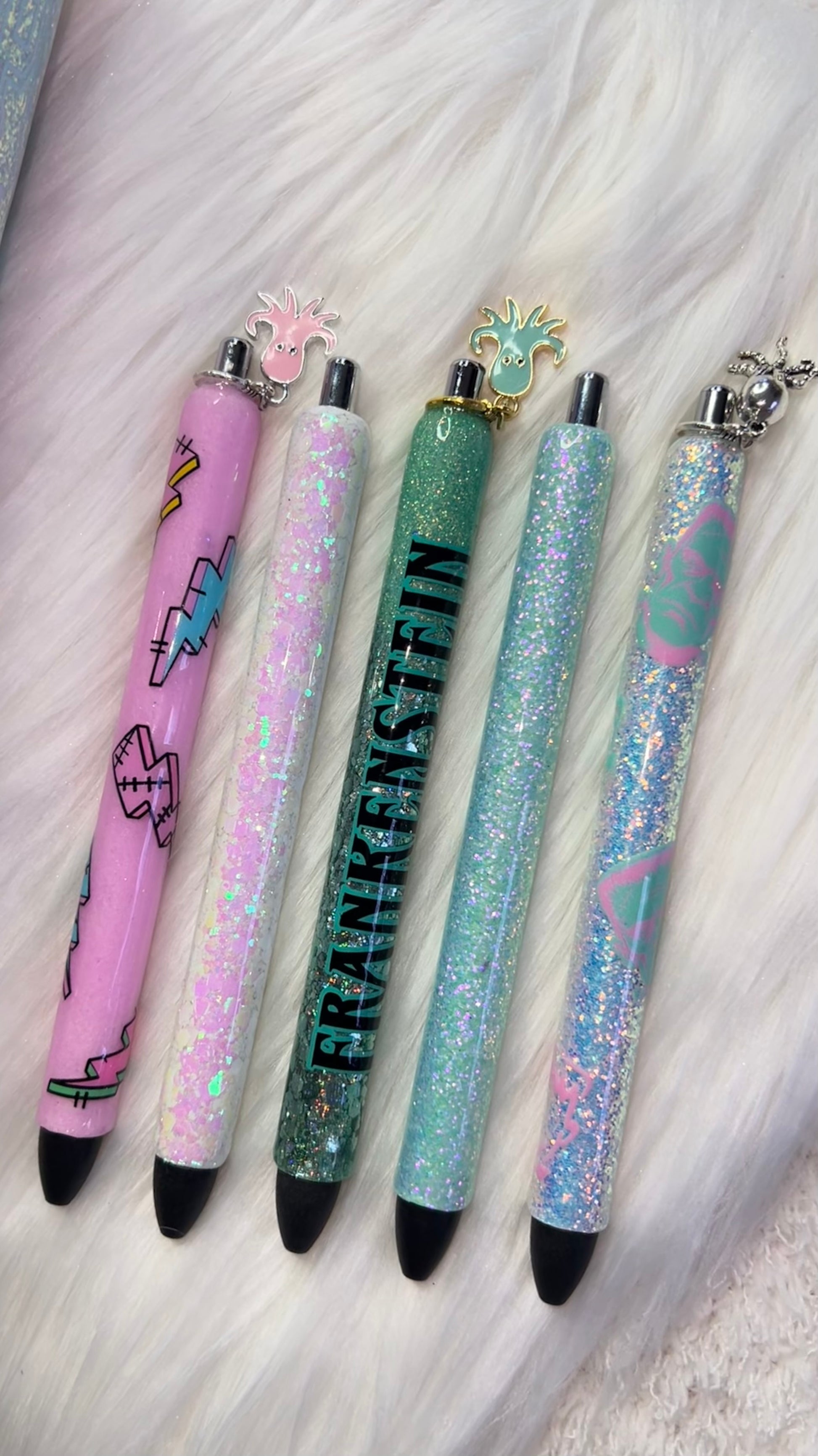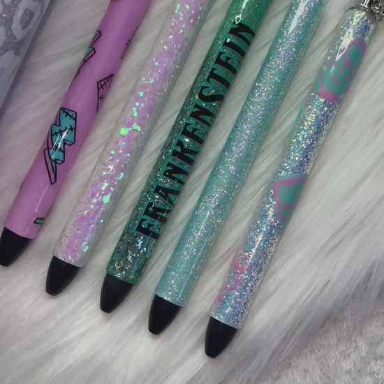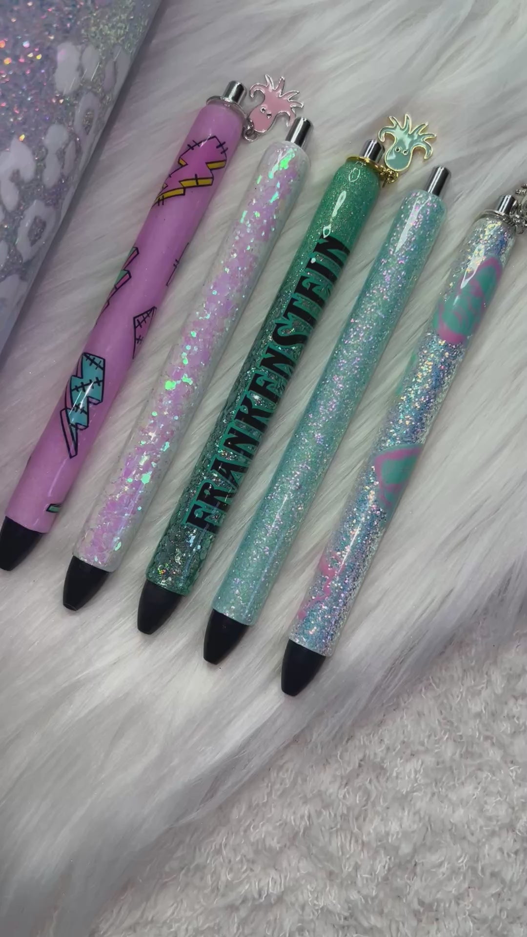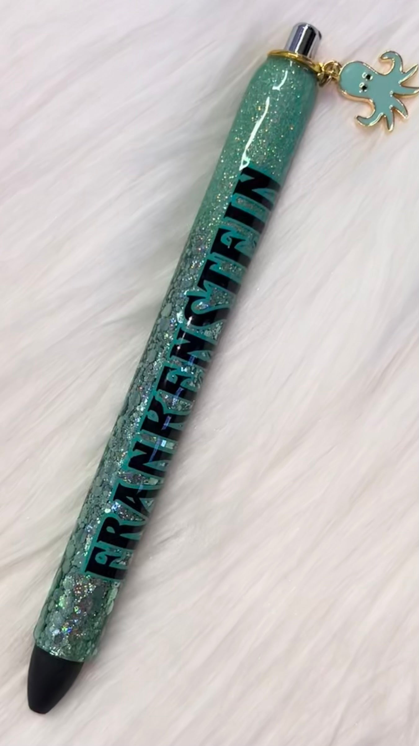 Emerald green glitter with chunky sparkle and bold Frankenstein lettering — classy monster energy with serious shine. 💚