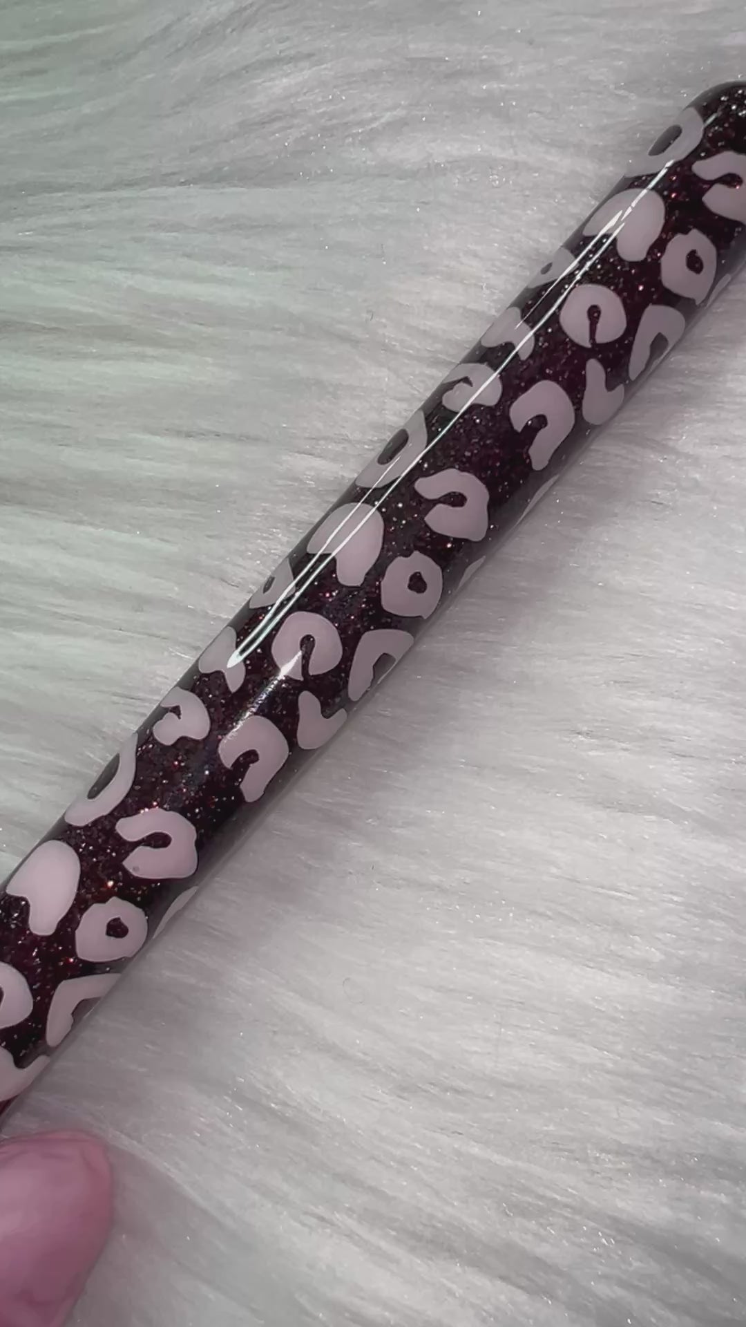 Mocha/brown base with pink leopard spots.
