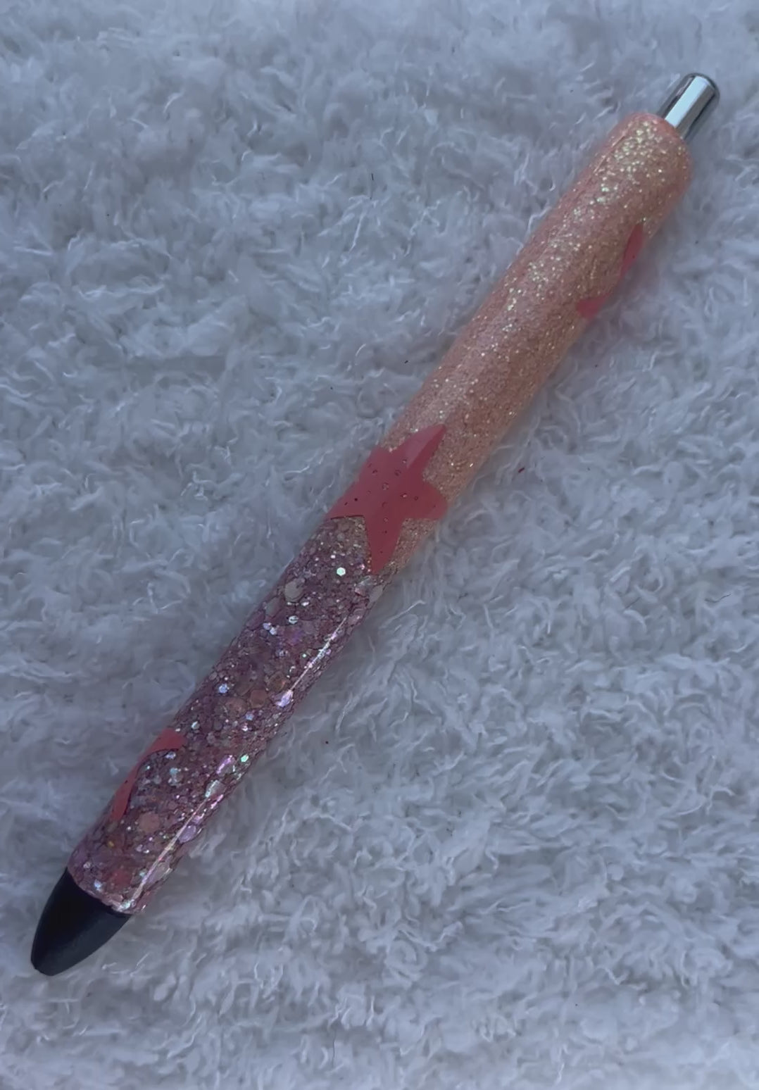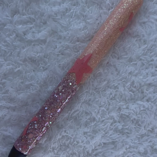 Soft peach and rose gold glitters collide with bold coral starfish for a beachy, feminine finish. It's subtle, sweet, and sparkly with a hint of mermaid-core magic.