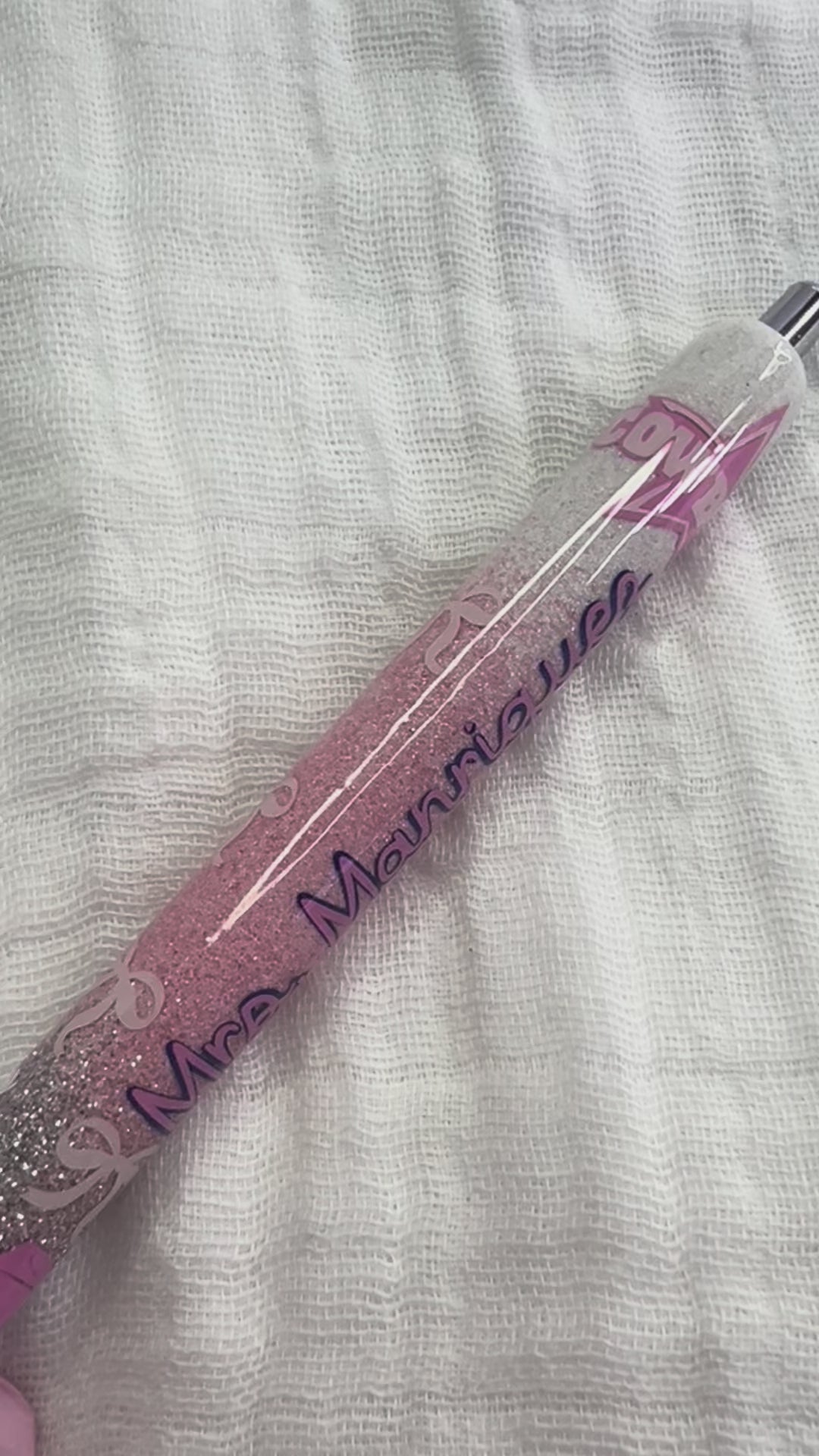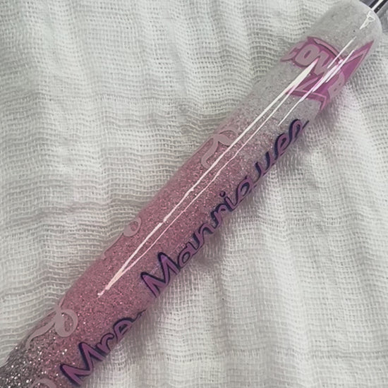 A silver-to-pink ombré glitter design with the Cowboys logo in hot pink, plus cowboy boot and bow accents. Personalized with my customer’s last name for a one-of-a-kind sparkle.