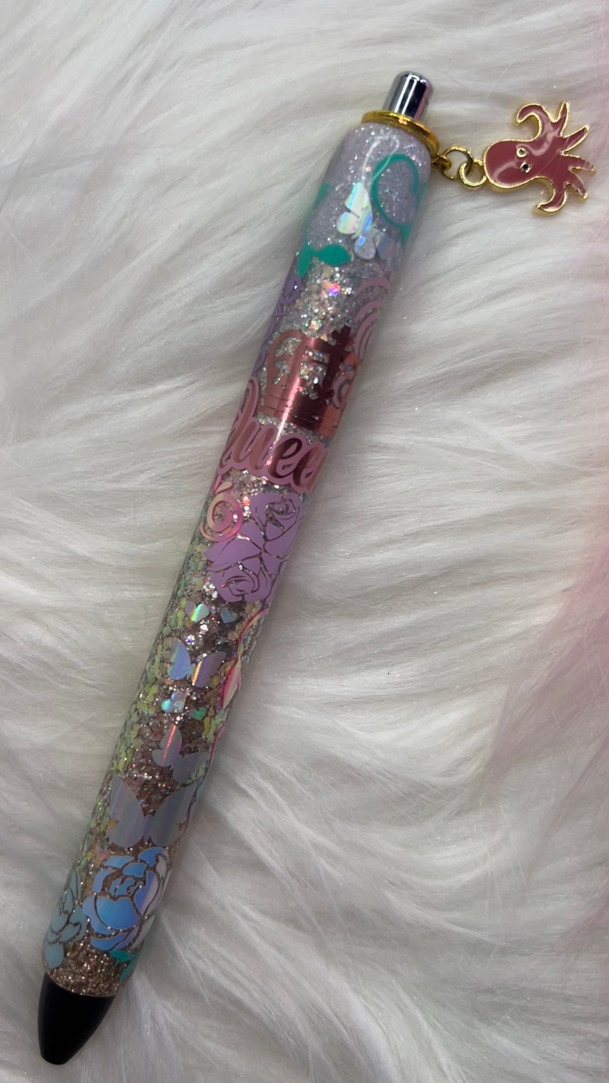 Dipped in champagne pink and rose gold, this pen radiates elegance and softness. Perfect for the queen who leads with grace and glitter.