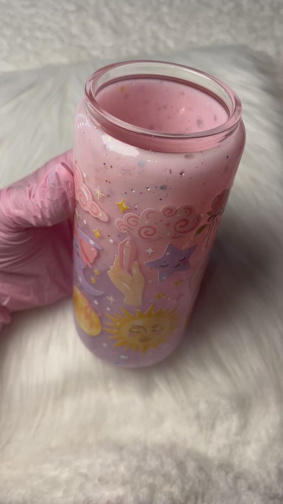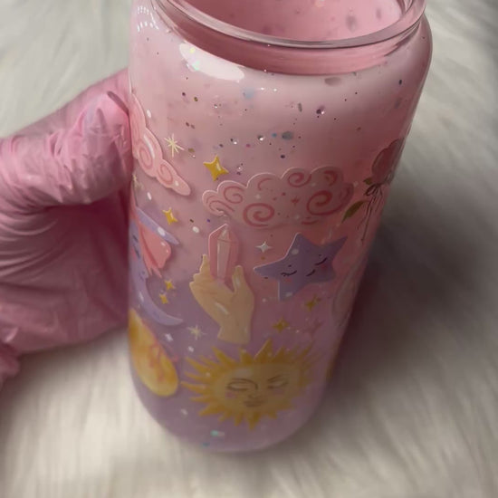 20oz Glass Snow Globe Tumbler -- Soft Girl Universe (pre-made)